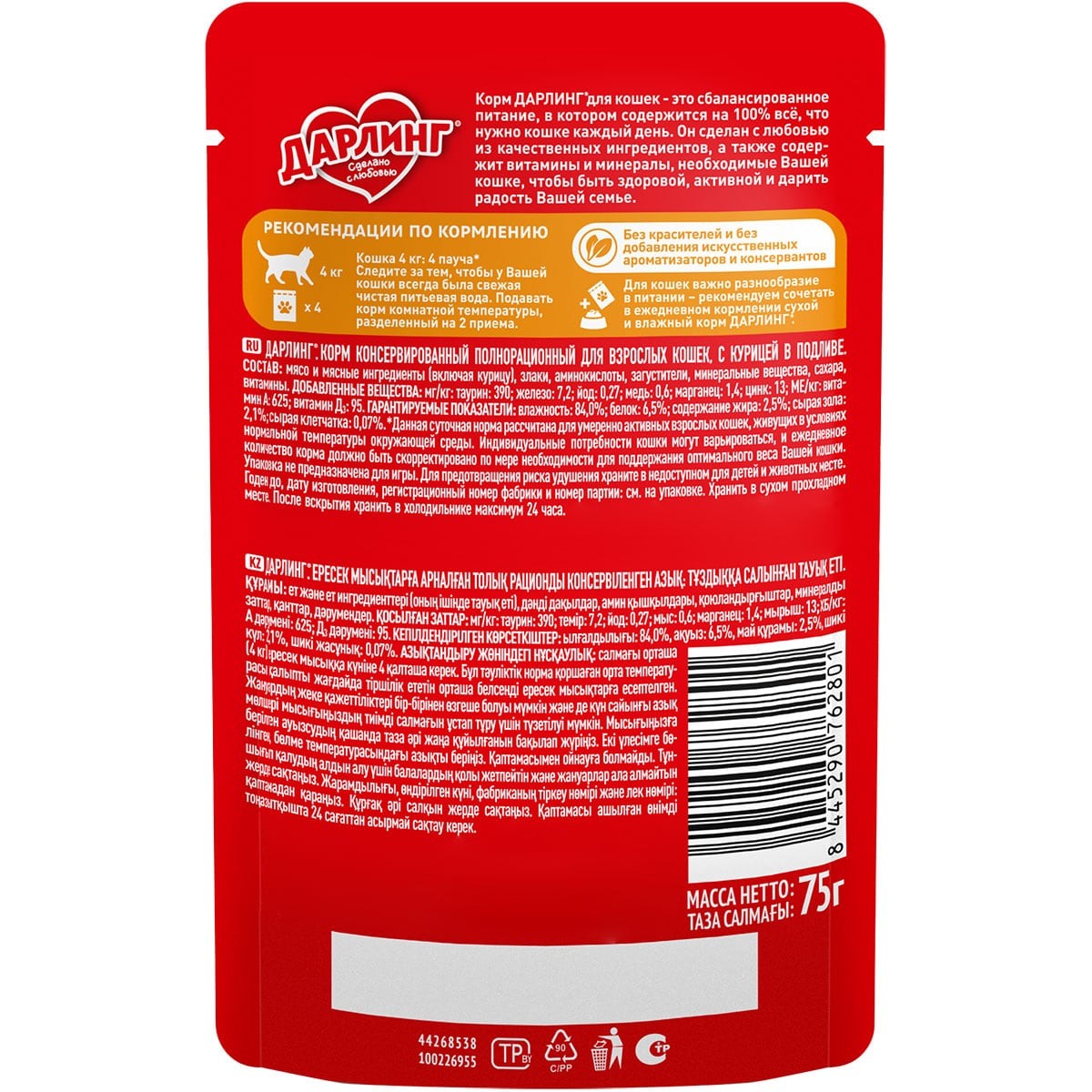 - Для кошек важно разнообразие в питании – рекомендуем сочетать в ежедневном кормлении сухой и влажный корм ДАРЛИНГ®.