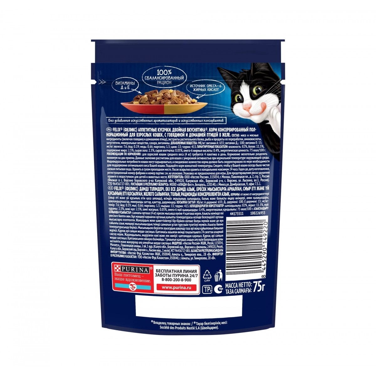 ✨ На этой странице Вы можете ознакомиться с подробными характеристиками, фото, ⭐ рейтингом, 💬 отзывами и 🛒 купить Влажный корм FELIX Двойная Вкуснятина для кошек с говядиной и птицей 75 г в Калининграде, в интернет-зоомагазине КАТИКО по доступной цене 29 р.!!!!