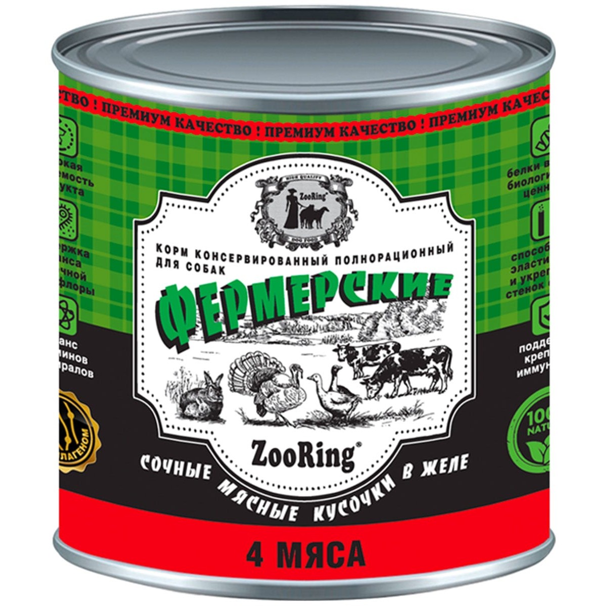 ✨ На этой странице Вы можете ознакомиться с подробными характеристиками, фото, ⭐ рейтингом, 💬 отзывами и 🛒 купить Консервы для собак ZooRing сочные кусочки Фермерские 4 мяса в желе, 850 гр в Калининграде, в интернет-зоомагазине КАТИКО по доступной цене 299 р.!!!!