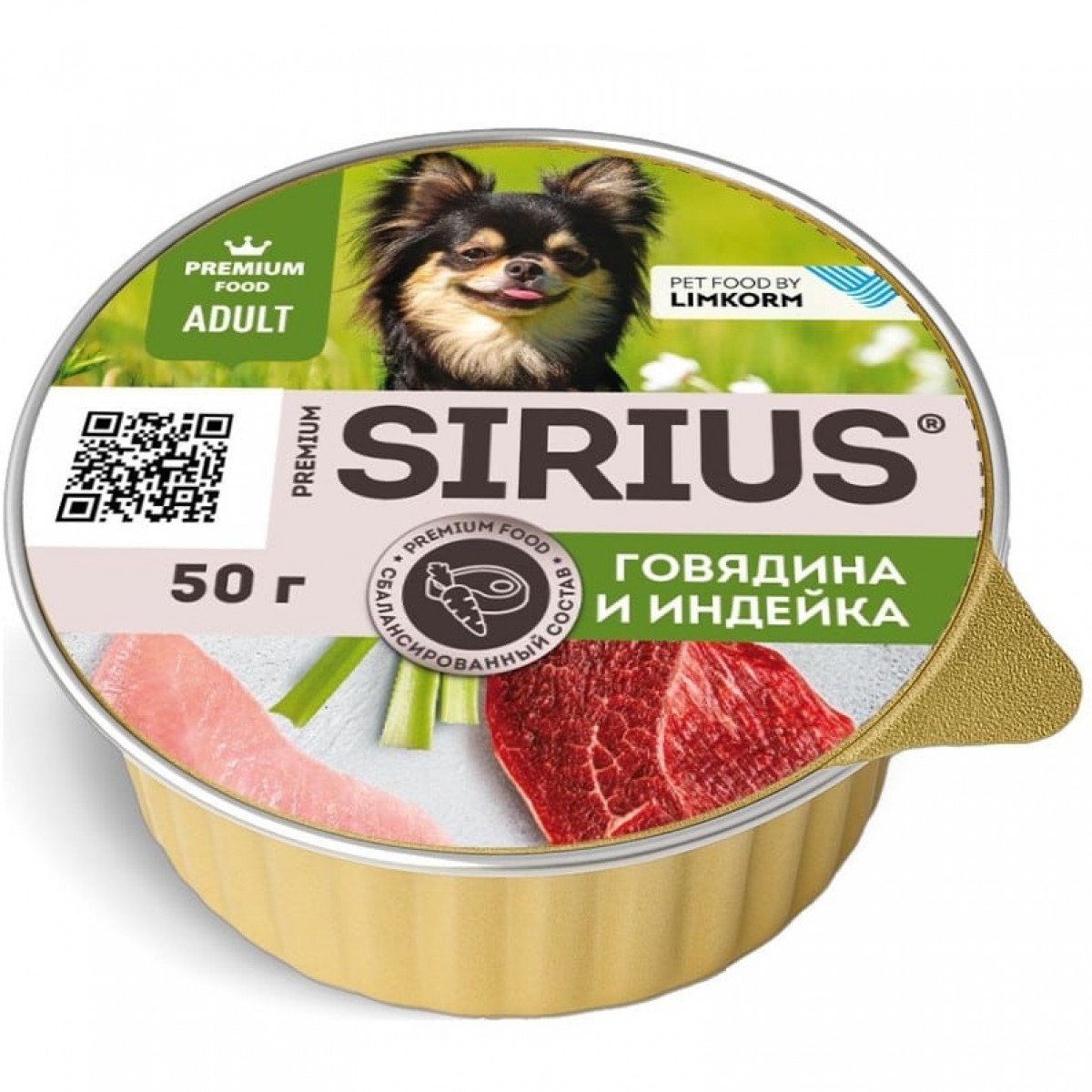 ✨ На этой странице Вы можете ознакомиться с подробными характеристиками, фото, ⭐ рейтингом, 💬 отзывами и 🛒 купить Корм влажный для взрослых собак малых пород SIRIUS ГОВЯДИНА И ИНДЕЙКА, 50 г в Калининграде, в интернет-зоомагазине КАТИКО по доступной цене 59 р.!!!!