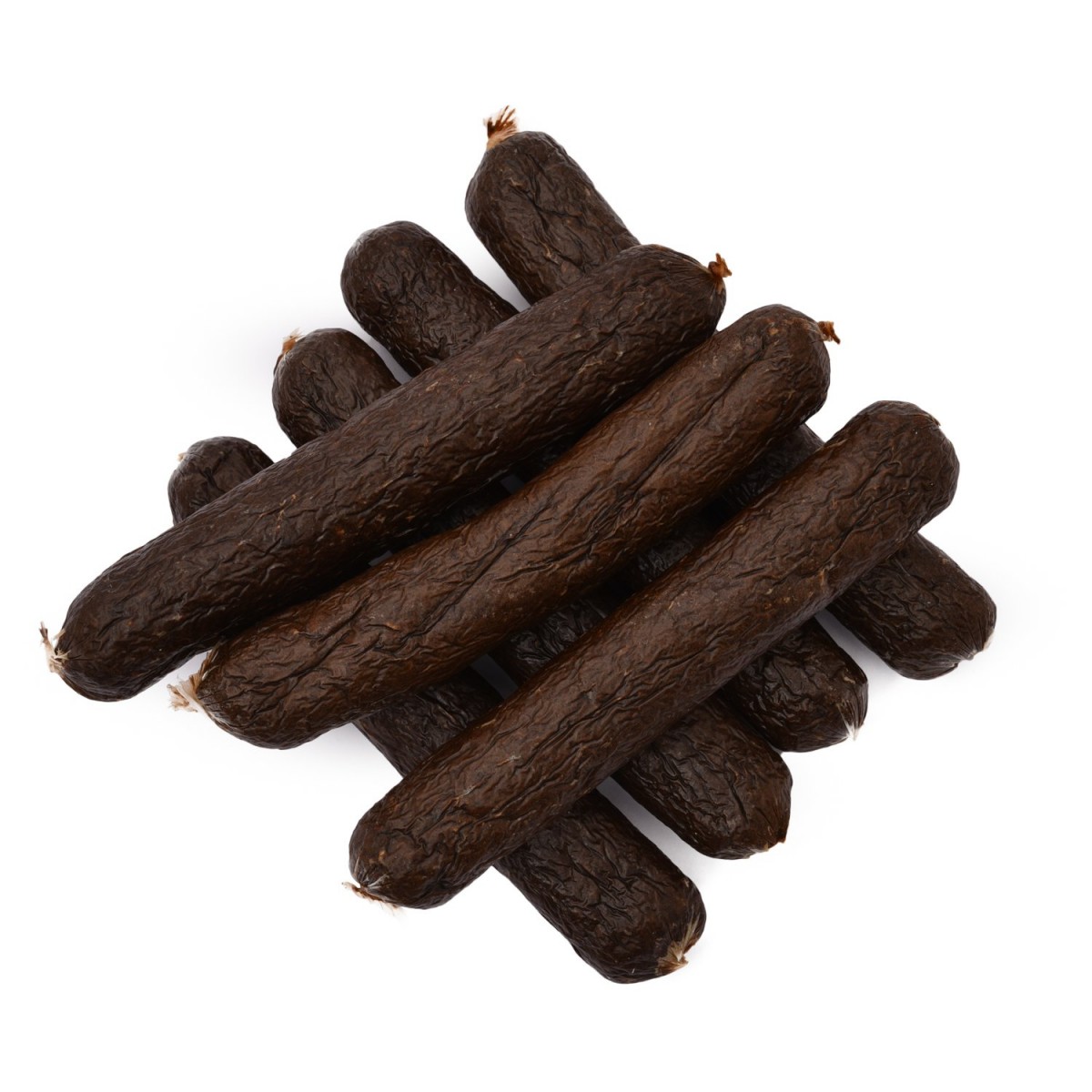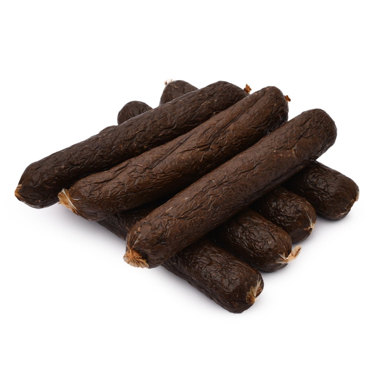 - Упаковка содержит толстые колбаски длиной 15 см, каждая весом 50 г.