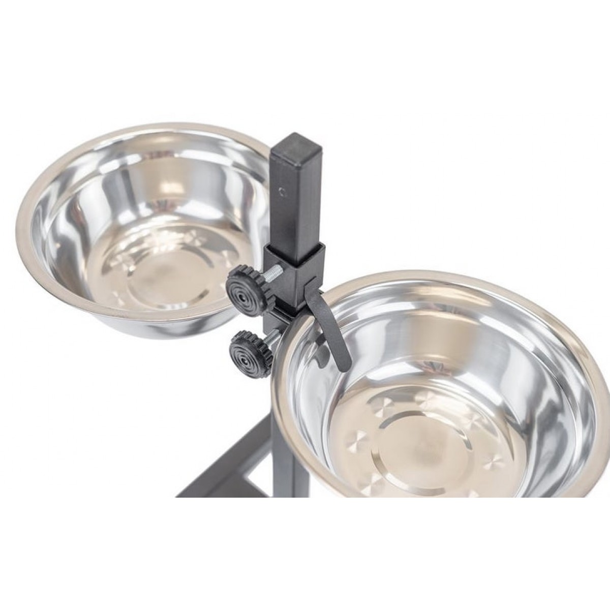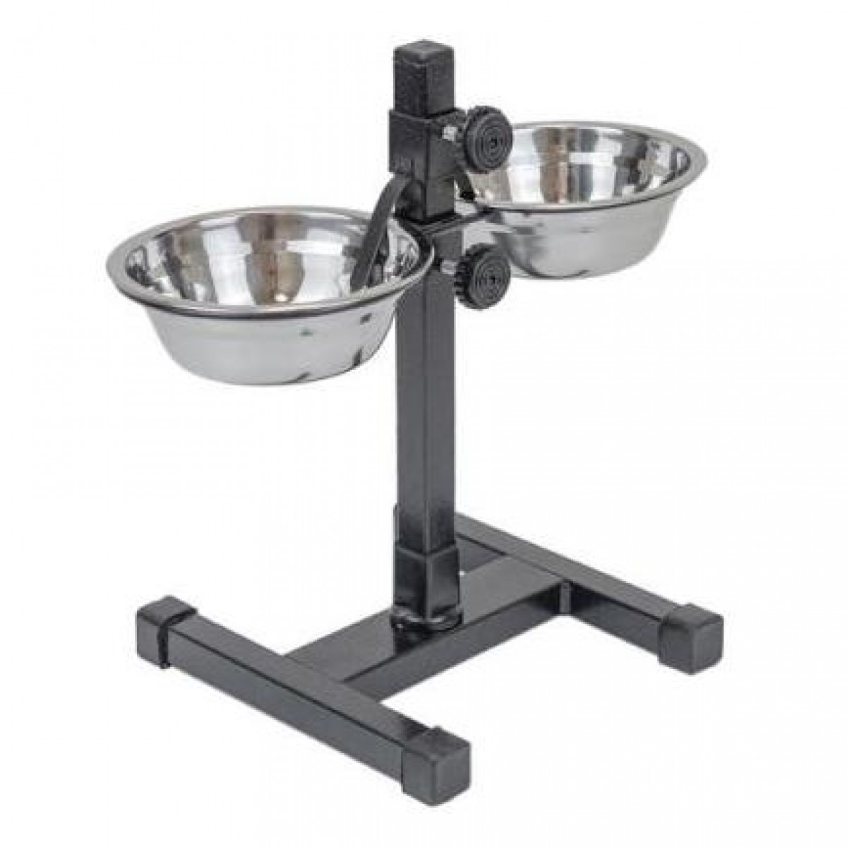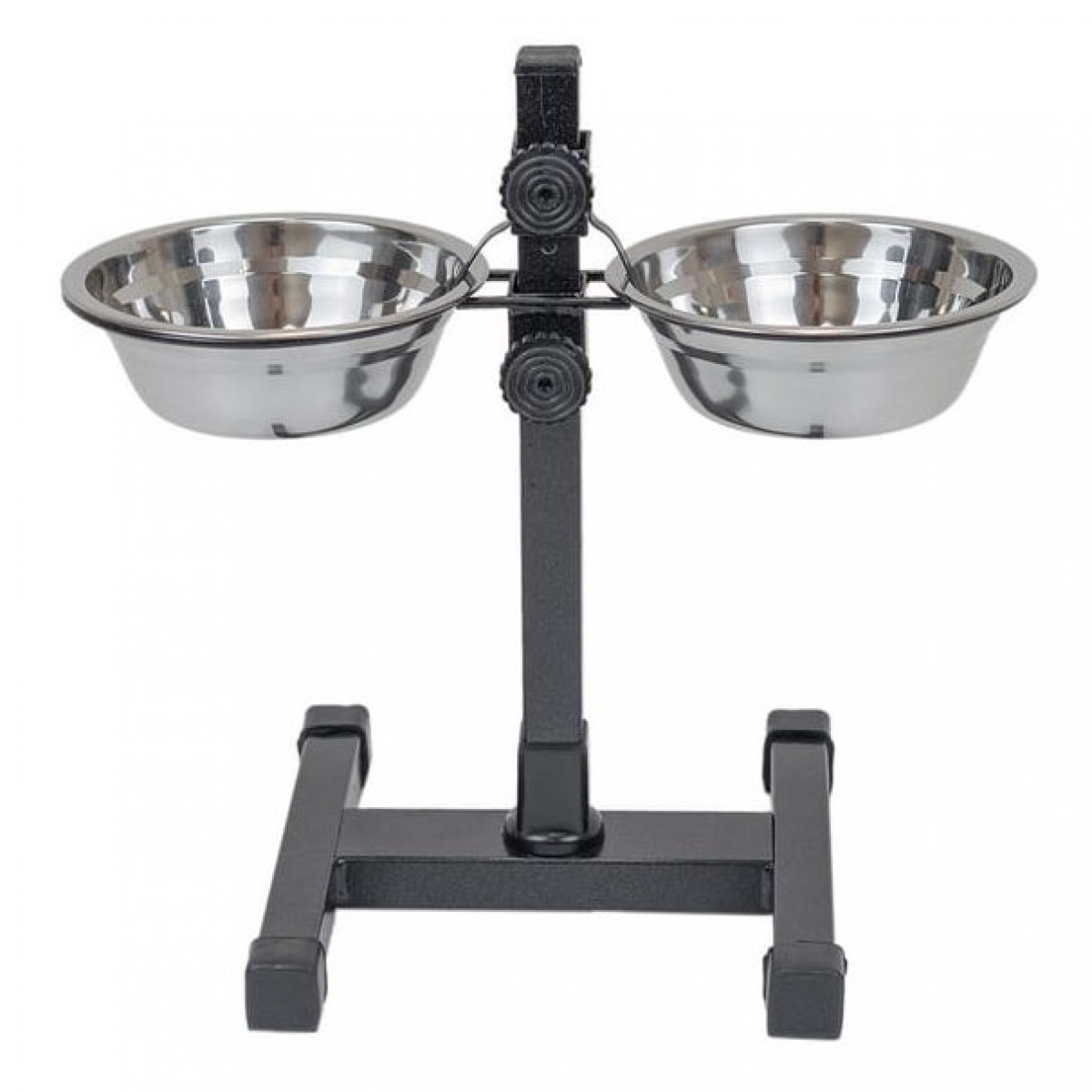 Регулируемая металлическая кормушка с двумя мисками из нержавеющей стали. Это стильное и практичное решение для кормления ваших питомцев.