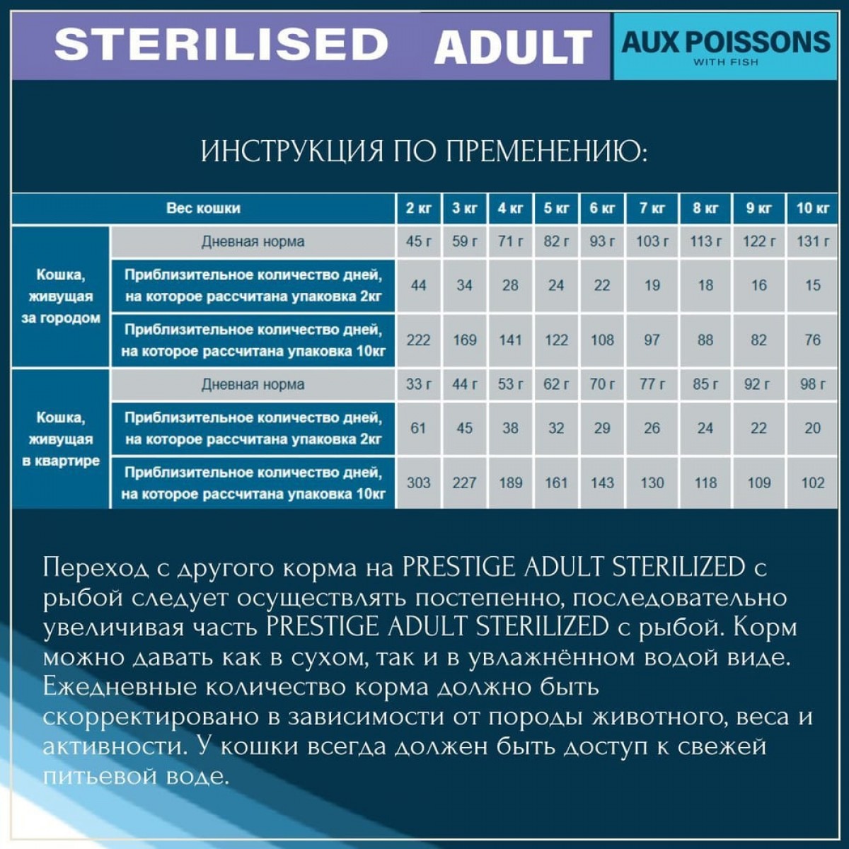 | Особые потребности | Кастрированным и стерилизованным, С избыточным весом |