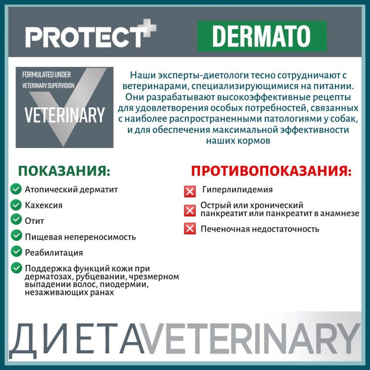 Лечебно-профилактический корм для собак, склонных к заболеваниям кожи. Поддерживает функцию кожи в случае дерматоза и чрезмерного выпадения шерсти. Снижает непереносимость ингредиентов и питательных веществ. Подходит для кормления в период восстановления, выздоровления.