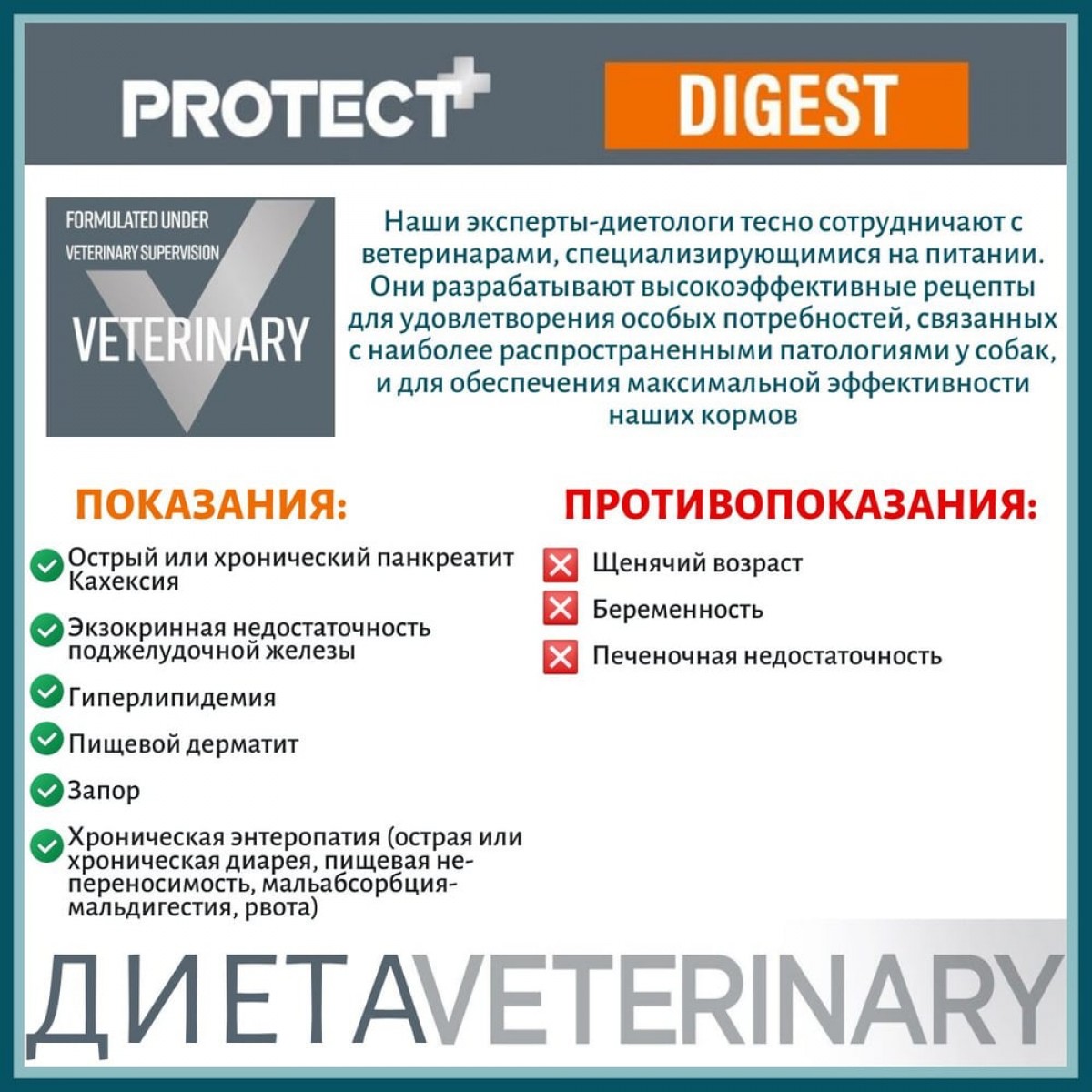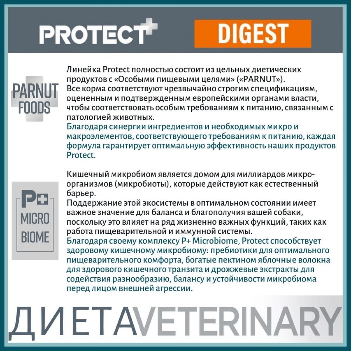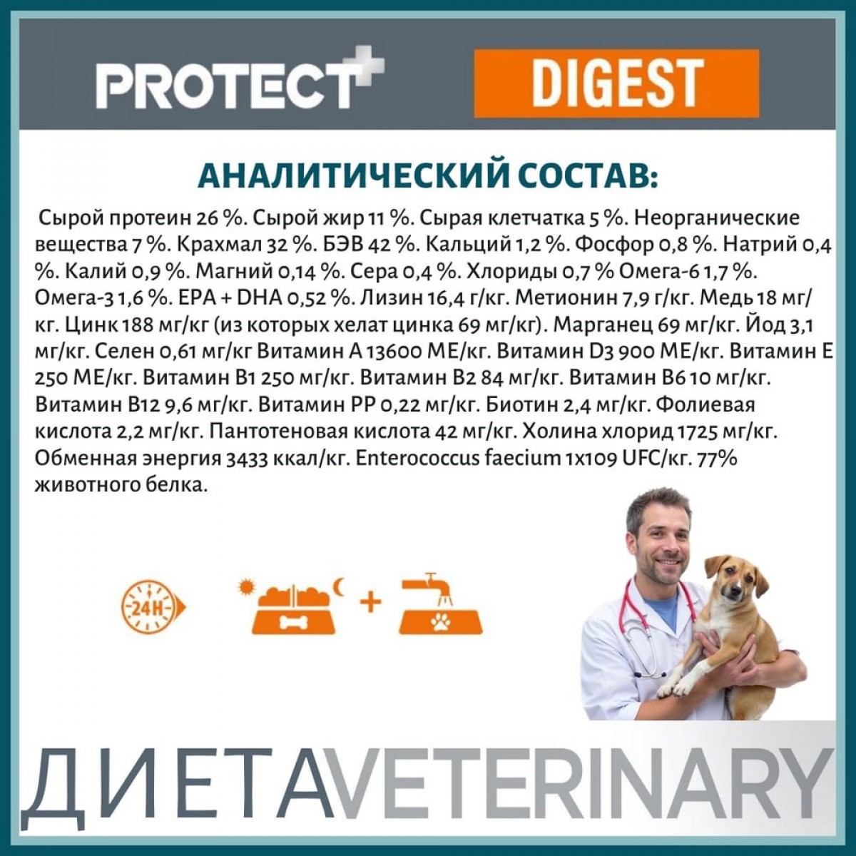 Переход с другого корма на Protect Digest следует осуществлять постепенно, последовательно увеличивая часть Protect Digest. Корм можно давать как в сухом, так и в увлажнённом водой виде. У собаки всегда должен быть доступ к свежей питьевой воде. Для достижения лучшего результата, следуйте рекомендация по кормлению и давайте никакой другой пищи животному.
