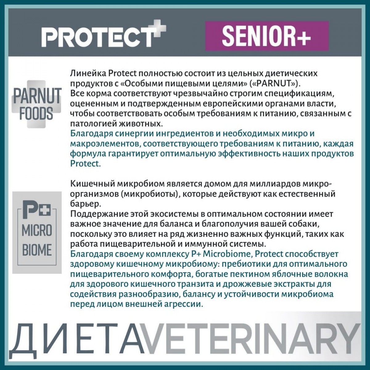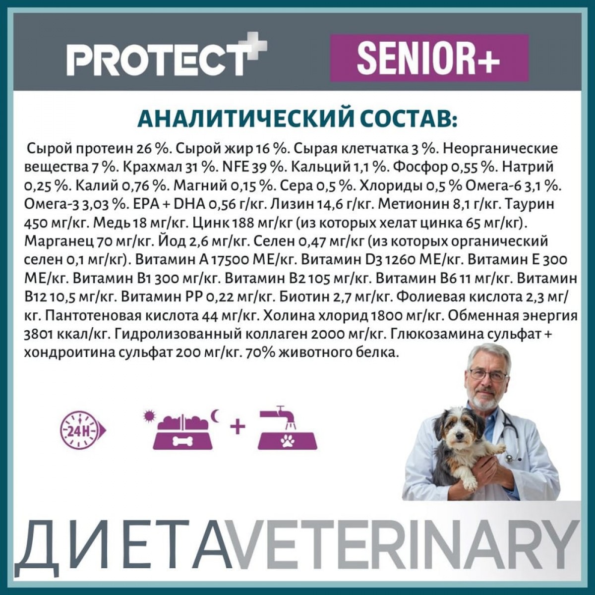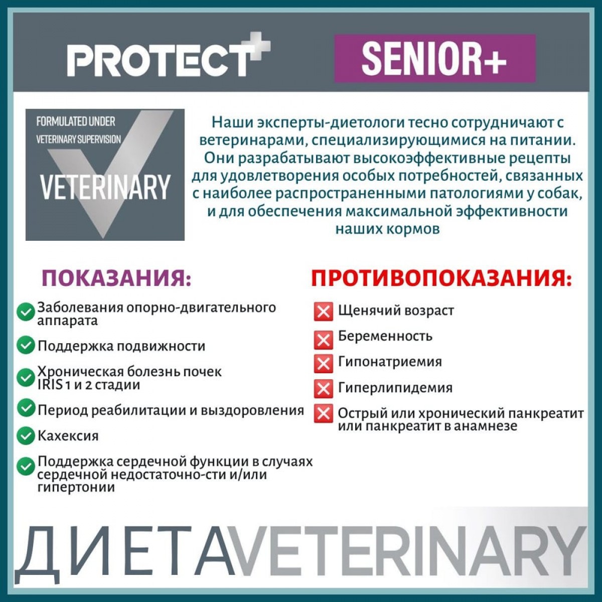 Лечебно-профилактический корм для собак преклонного возраста, замедляющий процессы старения. Способствует поддержке функций сердца при хронической сердечной недостаточности. Кормление в период восстановления, выздоровления. Корм подходит также для поддержки функций кожи при дерматозе и при чрезмерном выпадении шерсти.