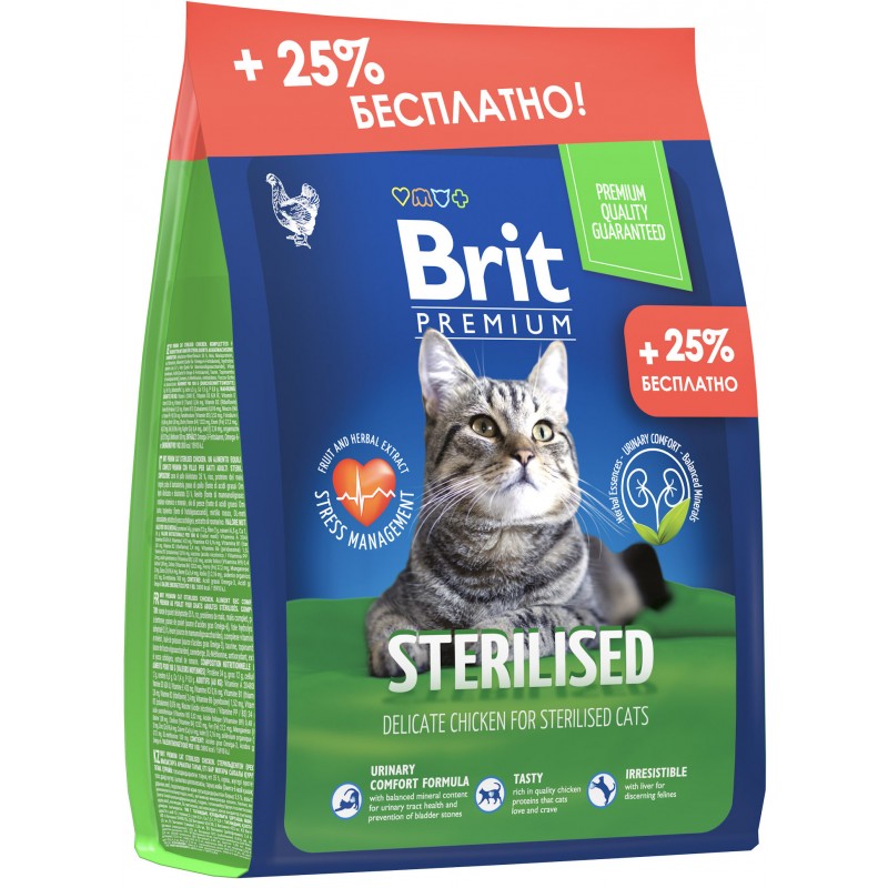 Brit Premium Cat Sterilized с курицей для стерилизованных кошек Содержит: