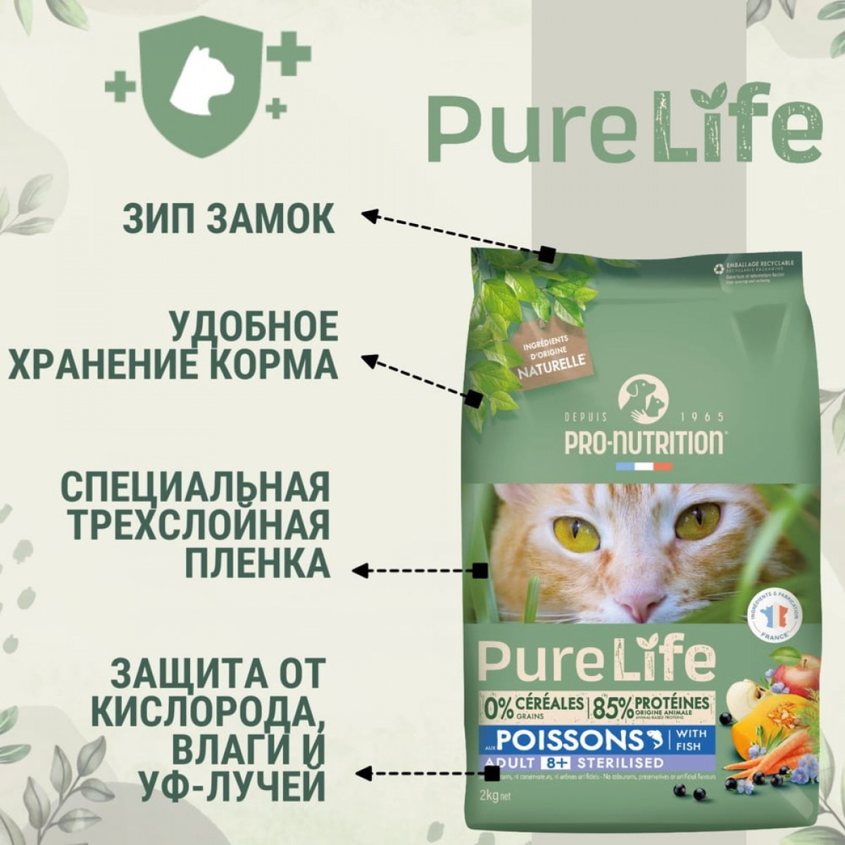 ✨ На этой странице Вы можете ознакомиться с подробными характеристиками, фото, ⭐ рейтингом, 💬 отзывами и 🛒 купить Pro-Nutrition PURE LIFE STERILIZED 8+ беззерновой холистик корм, c рыбой, 2 кг в Калининграде, в интернет-зоомагазине КАТИКО по доступной цене 2730 р.!!!!