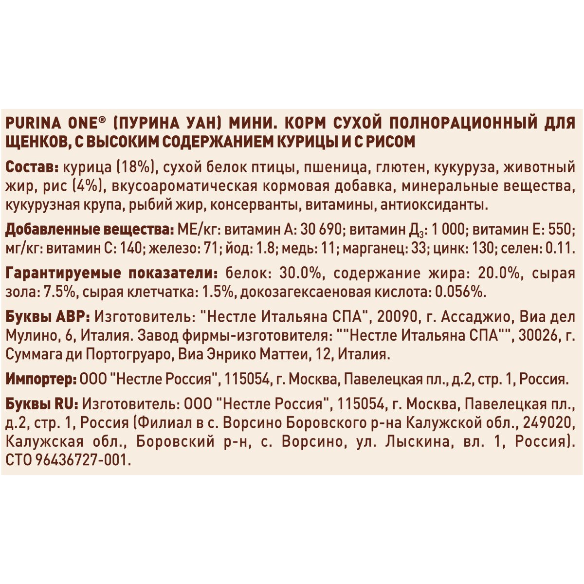 Пурина Уан производится американской компанией Purina (Nestle Purina PetCare Company, США). Производство осуществляется на заводах во Франции, Италии и России.