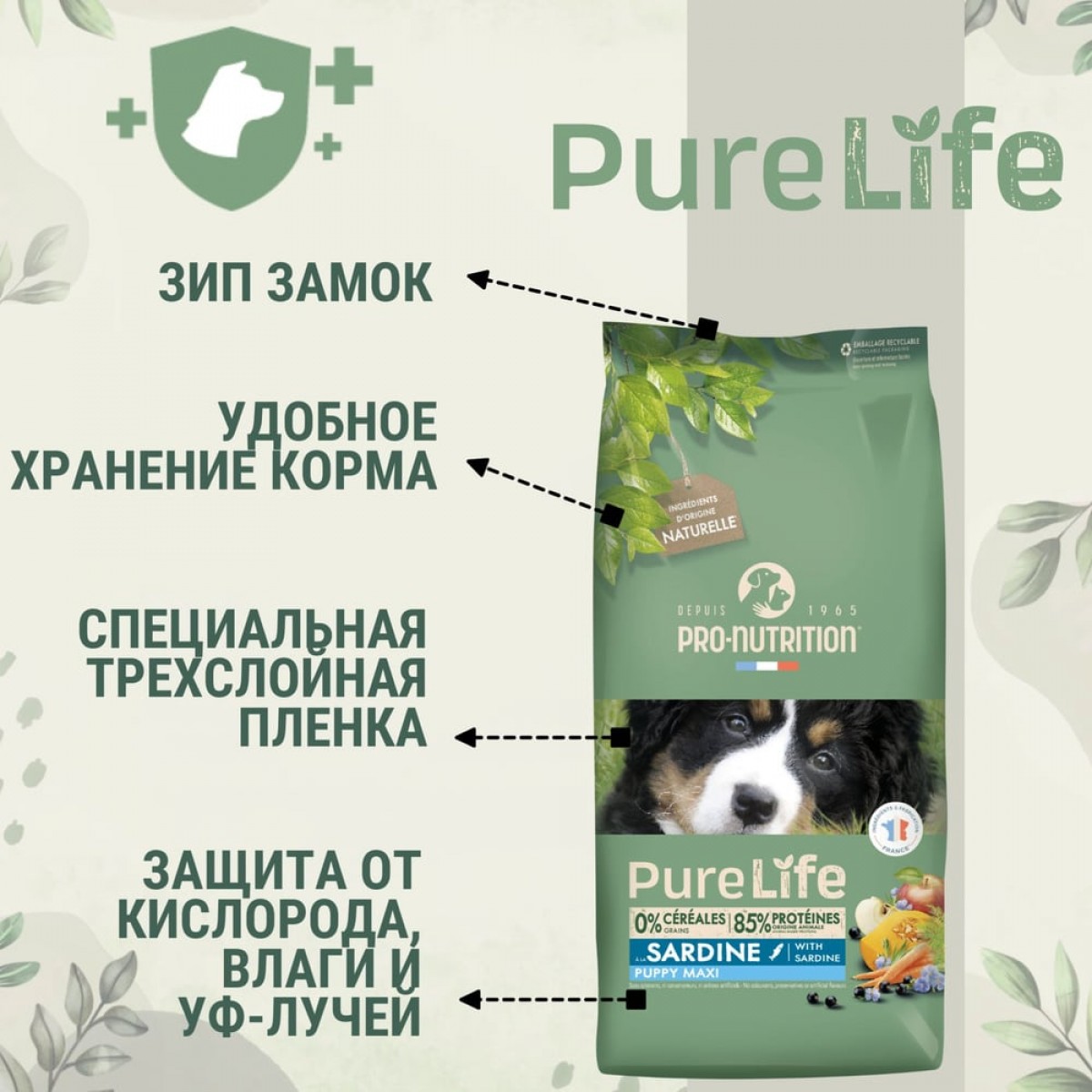 ✨ На этой странице Вы можете ознакомиться с подробными характеристиками, фото, ⭐ рейтингом, 💬 отзывами и 🛒 купить Беззерновой гипоалергенный корм для щенков крупных пород Pro-Nutrition Pure Life, с сардинами, 12 кг в Калининграде, в интернет-зоомагазине КАТИКО по доступной цене 11235 р.!!!!