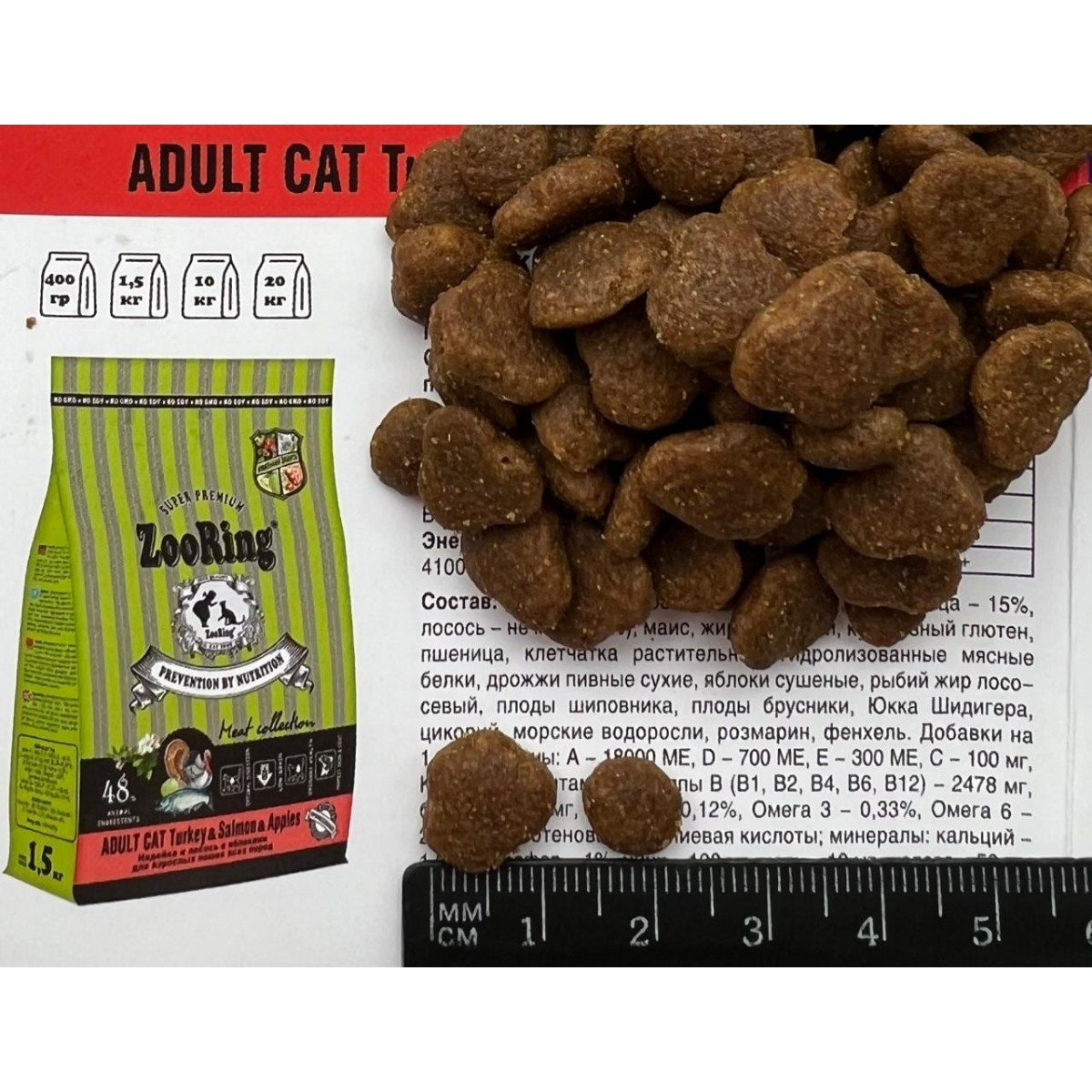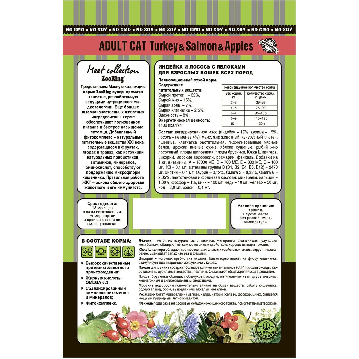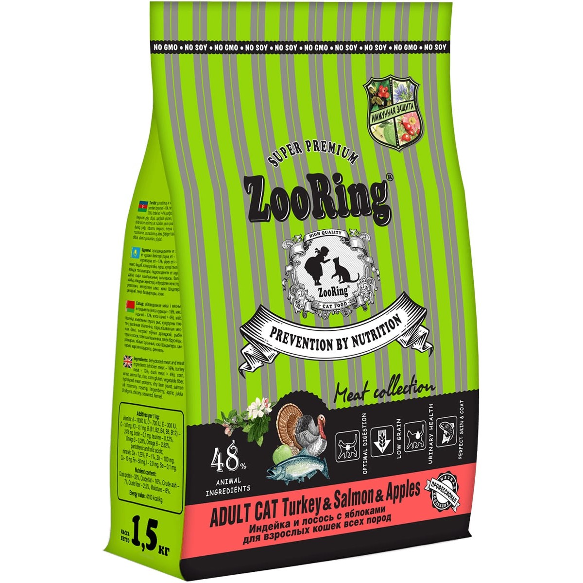✨ На этой странице Вы можете ознакомиться с подробными характеристиками, фото, ⭐ рейтингом, 💬 отзывами и 🛒 купить Сухой корм ZOORING ADULT CAT TURКEY & SALMON & APPLES для взрослых кошек с индейкой, лососем и яблоком, 1,5 кг в Калининграде, в интернет-зоомагазине КАТИКО по доступной цене 999 р.!!!!