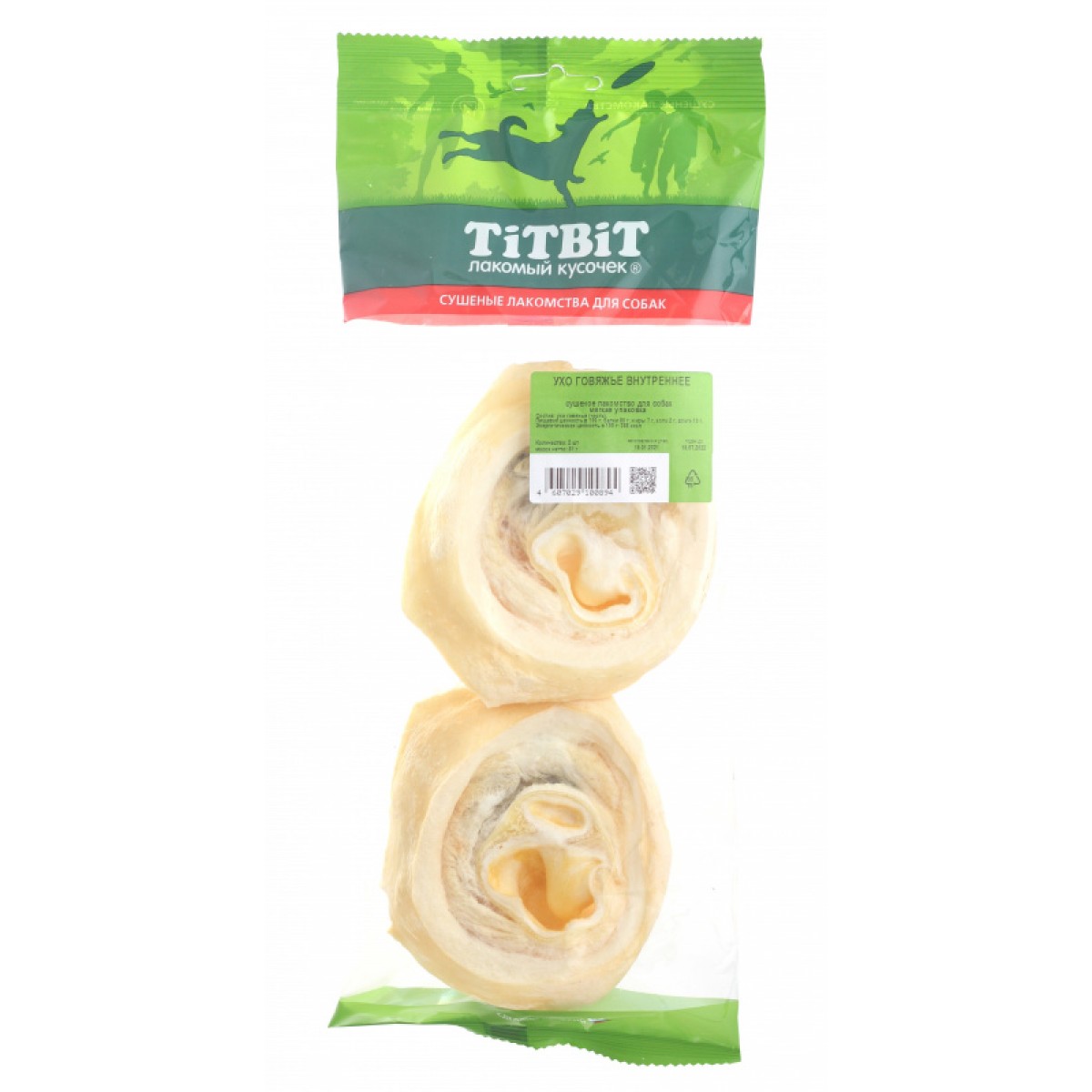 Лакомство для собак TITBIT Ухо говяжье внутреннее 81 г